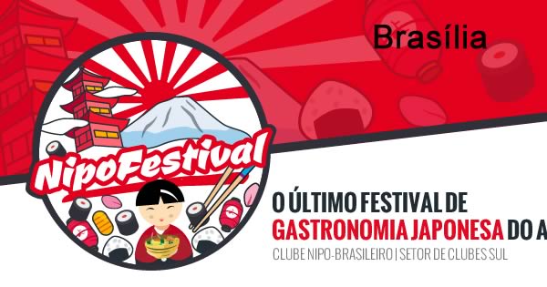 Nipo Festival 2016 - Brasília, o último festival de Gastronomia Japonesa do Ano. Dos mesmos organizadores da tradicional Festa Junina do Nipo, o Nipo Festival vem para fechar o ano com chave de ouro em termos de eventos com foco na cultura e gastronomia japonesa.