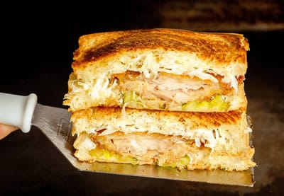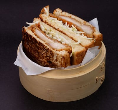 Sanduíche de pão de forma da casa, copa lombo empanado, molho tonkatsu, maionese japonesa e repolho. Acompanha batata frita normal e refrigerante.