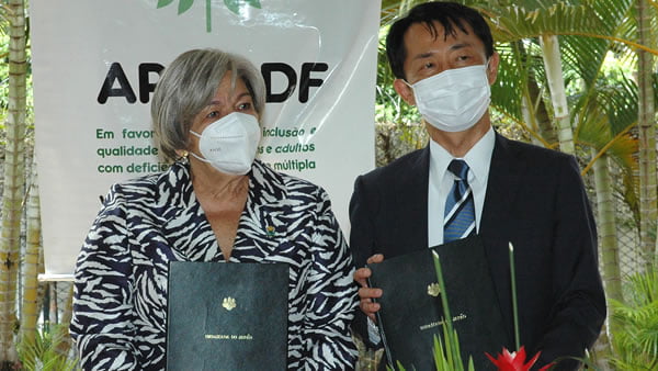 A cerimônia de formalização foi realizada nesta quinta, 17, na sede da APAE-DF, na Asa Norte, com a participação do Embaixador do Japão, Sr. Teiji Hayashi, e da diretora da entidade, Sra. Diva da Silva Marinho.
